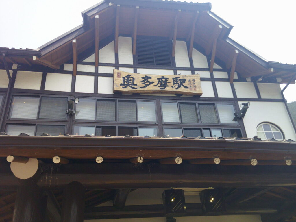 青梅線の終着駅らしく、貫禄ある駅看板です