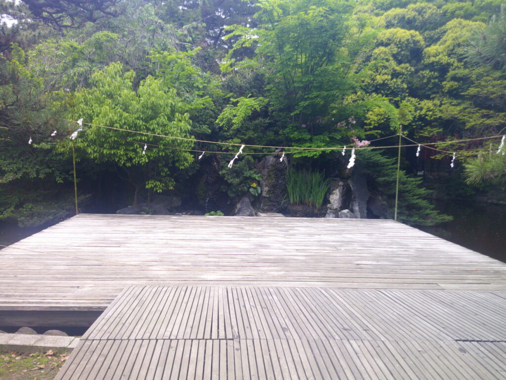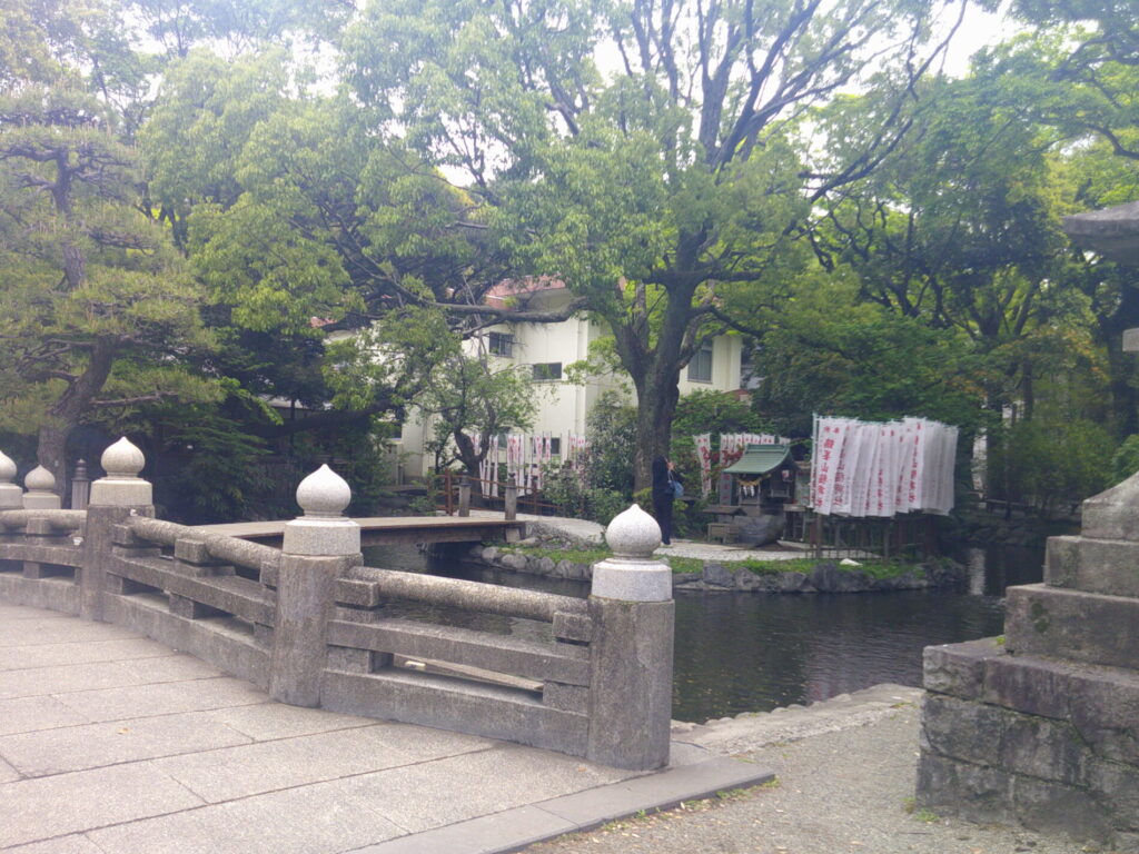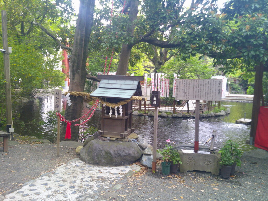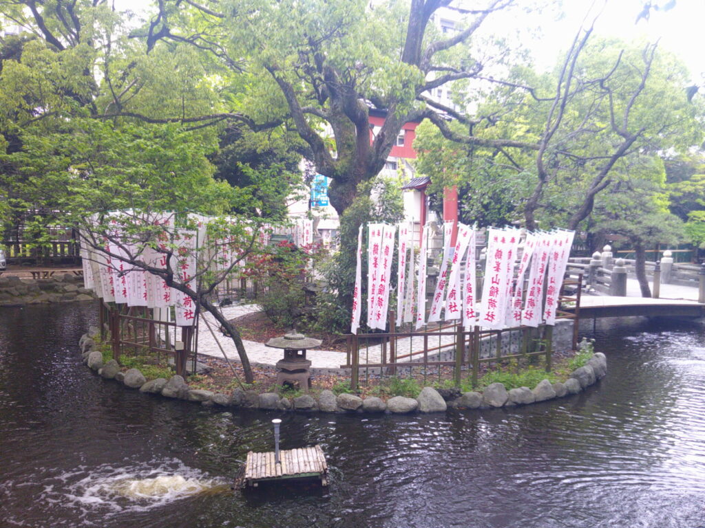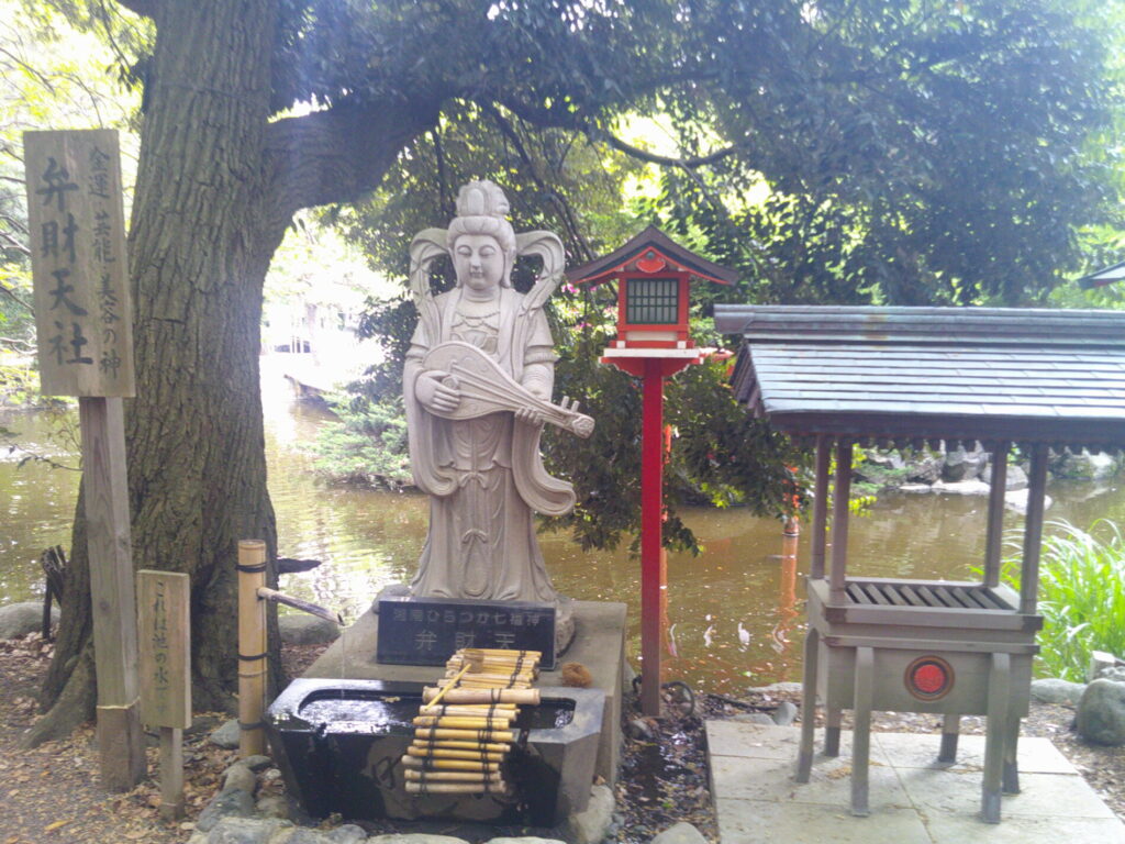 向こう側に弁天社が見えます