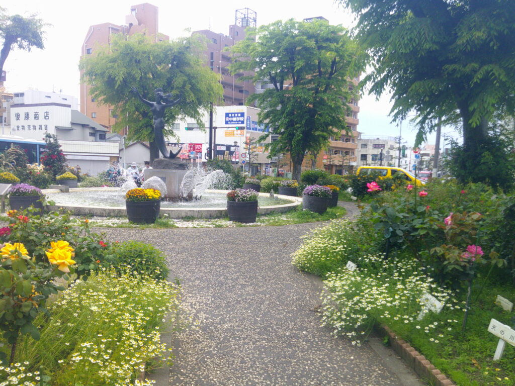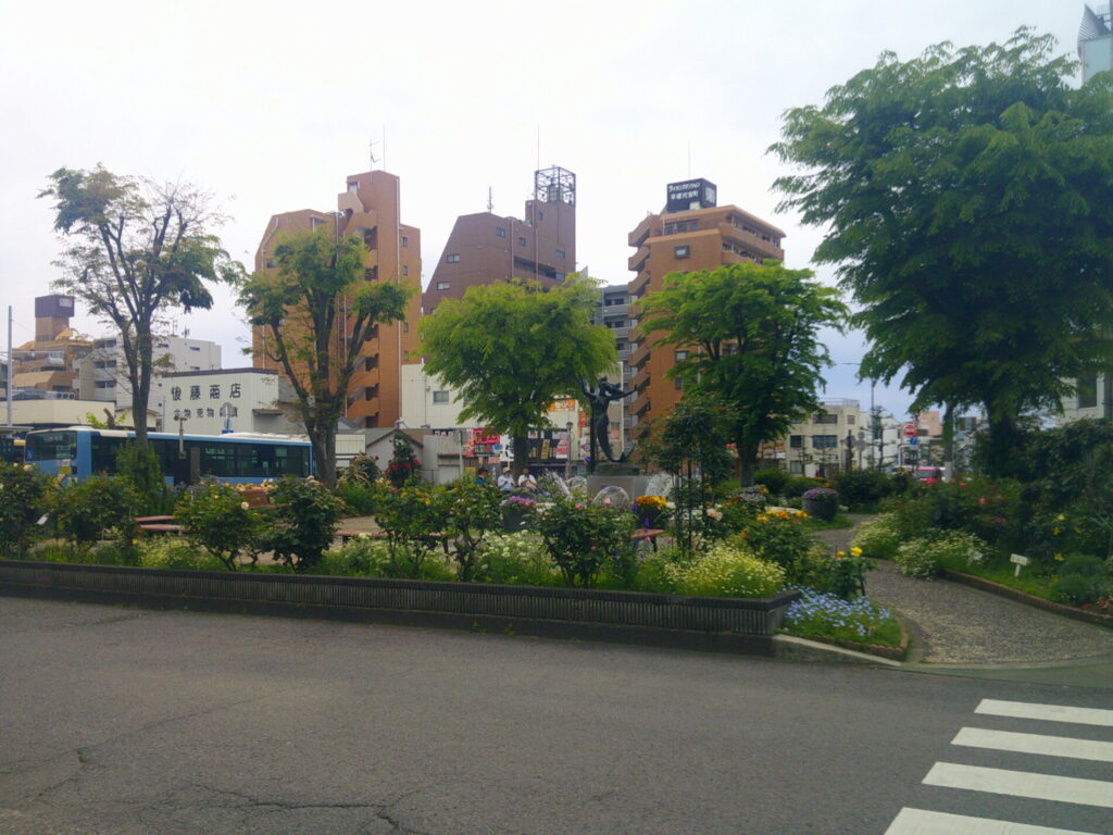 駅前ロータリの中心は、ちょっとした公園になっています