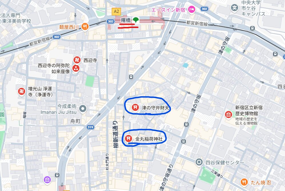 今回は新宿は曙橋の、津の守(つのかみ)弁財天と金丸稲荷神社に参りました